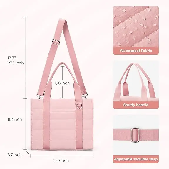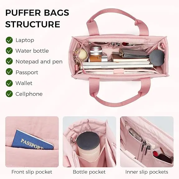 Custom Travel Tote Bag for Women Work Puffer Laptop Crossbody Bags with Zipper Quilted Gym Tote Purse Shoulder Handbags