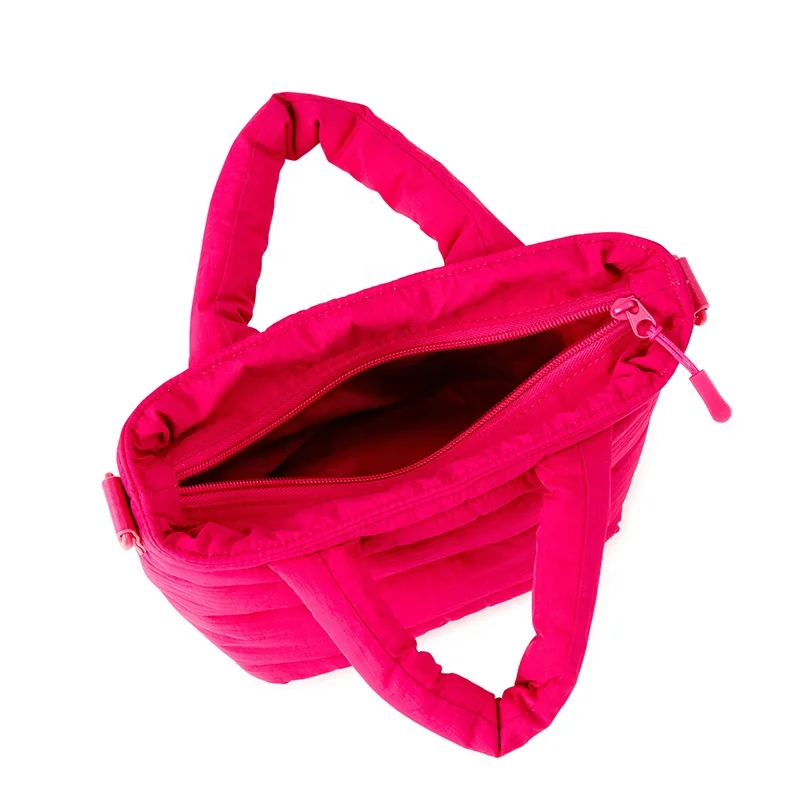 Custom Women’s Nylon Shoulder Handbag Quilted Puffy Purse with Adjustable Strap and Zipper Closure Lining Polyester